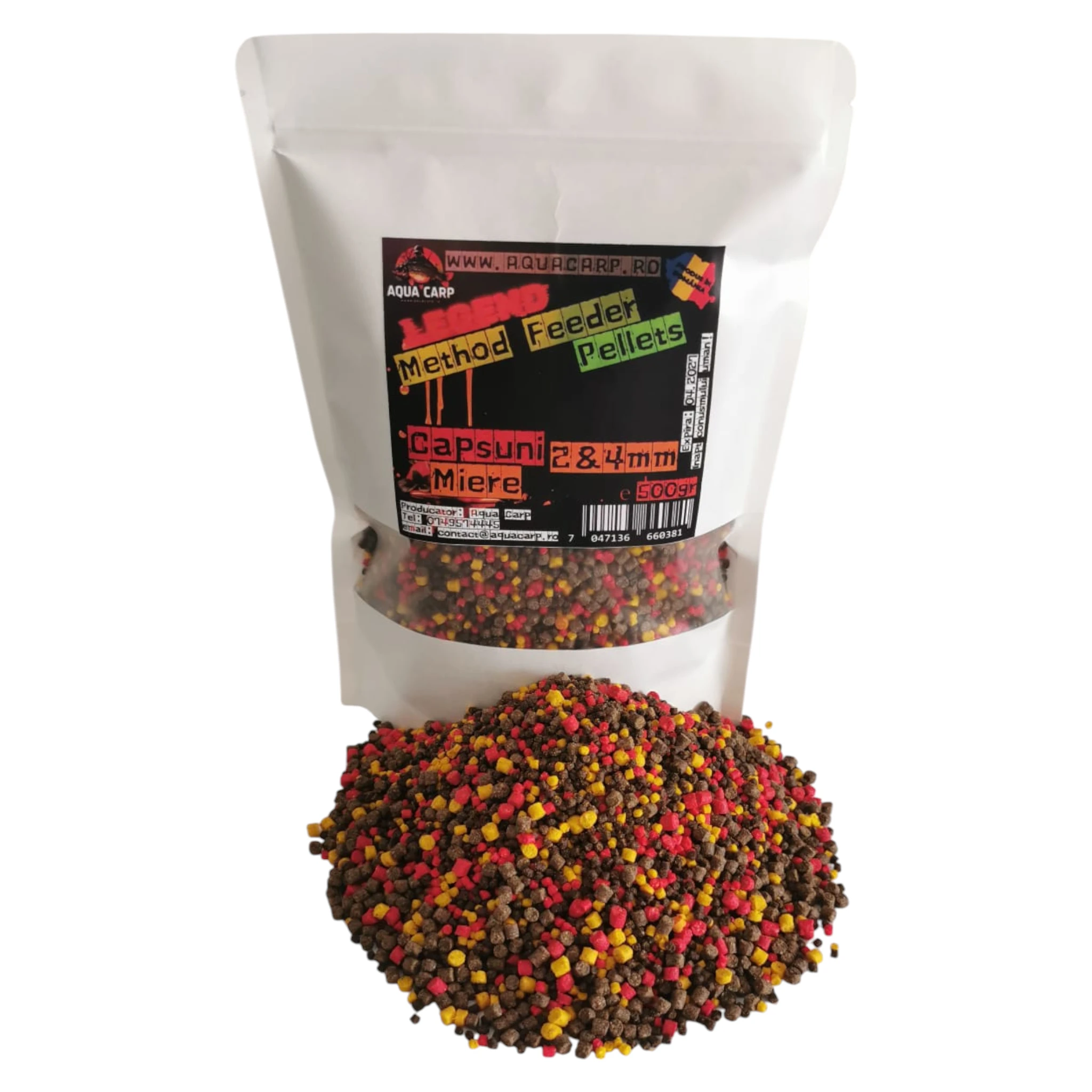 Pelete AquaCarp Legend Method Feeder 2&4mm Capsuni & Miere 500gr