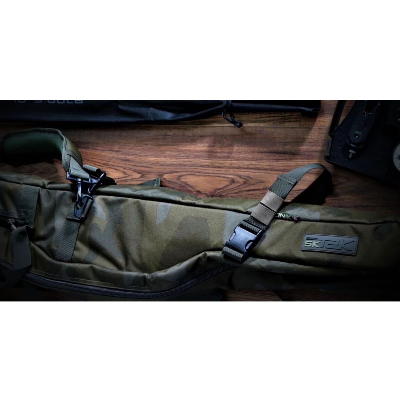 Sonik SK-Tek Rod Compact 12’ este o husa dedicata protectiei lansetelor, care economiseste mult spațiu si care vă poate depozita în siguranță pe langa acestea si accesorii cum sunt juvelnicul sau umbrele tip brolly. Dispunerea internă sus/jos le oferă un profil foarte slim, dar sunt dimensionate pentru a accepta cu ușurință si lansete cu inele de plecare de 50mm din seria K. Este croita astfel incat sa poata acomoda fara probleme mulinete de dimensiuni mari, de tip Big Pit. Despărțitoarele complet căptușite și curelele cu velcro vor păstrea lansetele în siguranță maxima. Sistemul inovator de buzunare laterale poate fi extins pentru a ține un bivvy de tip brolly și poate ține, de asemenea, un juvelnic, sling de cântărire, sling de reținere și picheti de toate tipurile. De asemenea, puteți adăuga suplimentar daca este cazul doua lansete în exteriorul husei. Alte caracteristici includ două mânere captusite, curea de umăr căptușită și două buzunare externe pentru plumbi. Este o husa confectionata din tesatura hidroizolata din material PVC HD 600D cu finisaj camo, proiectata special pentru a stoca 5 lansete de 3.60m cu mulinete montate. Husa are un design optimizat pentru a maximiza spatiul de depozitare a lansetelor si a mulinetelor. Decupajul a fost special gandit pentru a reduce volumul ocupat la transport si dispune de panouri despartitoare captusite. Peretele husei este ranforsat in toate punctele cheie, inclusiv in zona mulinetelor si a inelelor. Zonele in care se fixeaza cotorul lansetei sunt captusite la fiecare capat, in timp ce capatul varfului prezinta fixare sigura prin curea velcro si apoi este protejat de un panou suplimentar securizat cu velcro. Caracteristici: Sistem compact de depozitare al lansetelor sus/jos; Capacitate numar lansete: 3+2; 3 x compartiment interior pentru lansete 2 x compartiment exterior pentru lansete Secțiuni de vârf și fund ranforsate; Buzunare laterale pentru plasă, cântărire și buzunare laterale Buzunar lateral extensibil pentru bivvy; Complet căptușita; Compatibila cu mulinete Big Pit Compatibila cu inele mari de plecare de 50 mm Material camo Bank-Tek cu suport din PVC HD 600D Două buzunare externe pentru plumbi Mânere dublu captusit pentru transport Curea de umăr căptușită Fermoare duble, rezistente la manipulari repetate
