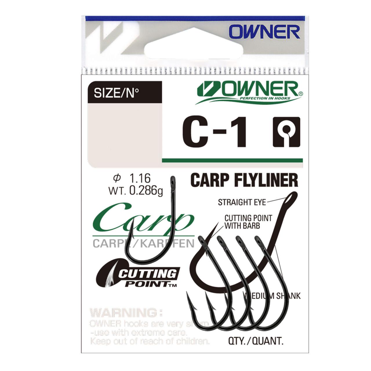 Carligele Owner din gama C-1 CARP LINER fac parte din sortimentul CARP. Majoritatea tehnicilor de pescuit presupun experienta – pescuitul la crap cu atat mai mult. Carligele CARP LINER au in vedere cateva principii – sa intepe foarte bine si eficient crapul, dar sa nu-l raneasca mai ales in momentul eliberarii, sa aibe legatura pe ochet astfel incat sa permita nodul fara nod si fir de par, sa faciliteze monturi cu autoantepare. Asadar, C-1 sunt produse din sarma de otel Hi-CARBON tratata electrochimic, au varf CUTTING POINT si se preteaza foarte bine atat monturilor pe fir textil cat si celor pe fluorocarbon. Tinand cont de forma si dimensiunea tijei, precum si de distanta dintre varf si tija C-1 CARP LINER se preteaza cel mai bine unei monturi de tip Long Carping Rig. Culoarea BLACK CHROME permite o foarte buna mascare pe substrat.