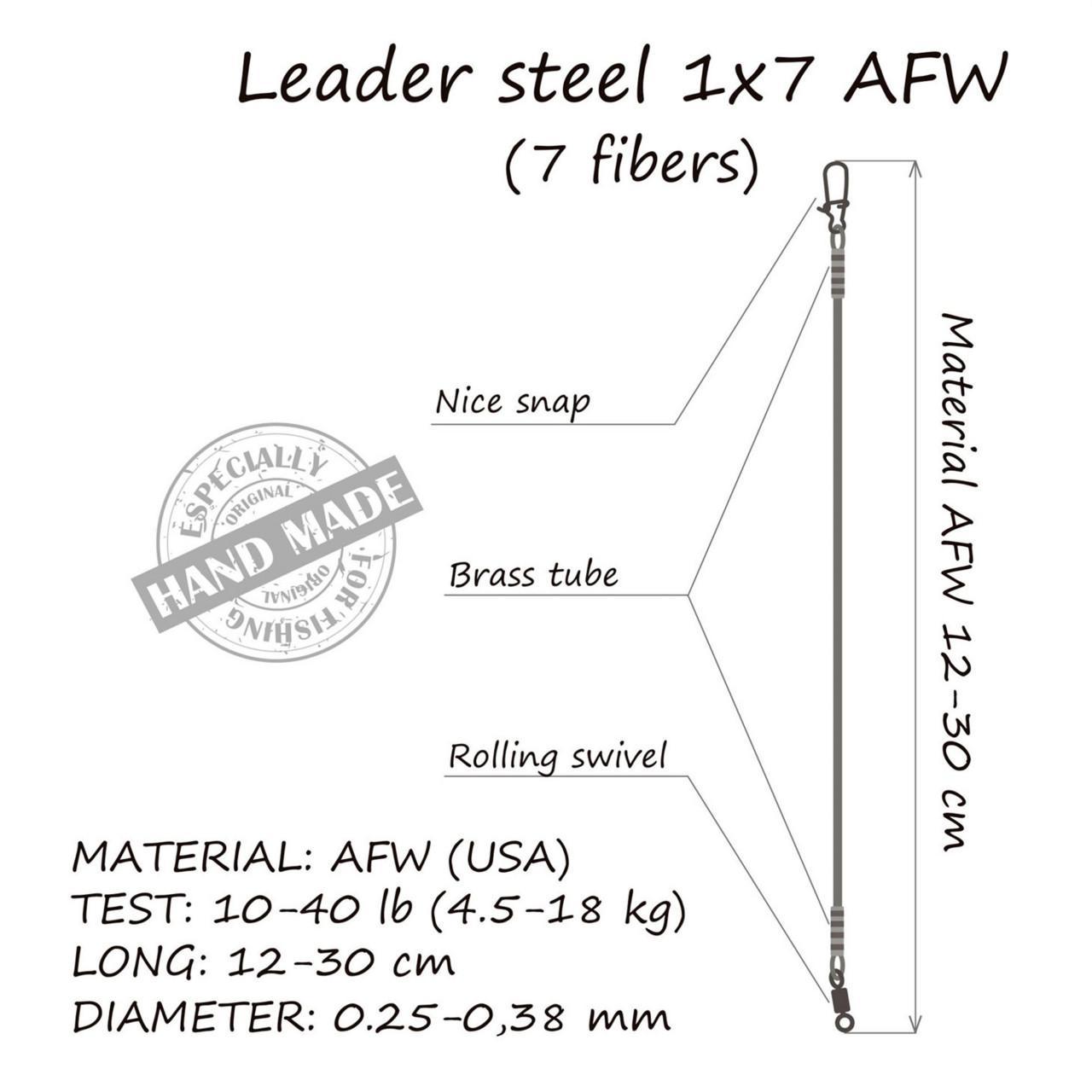 Orange Steel Leader 1×7 este un fir din sarma din otel inoxidabil impletit in 7 fire. Avantajul oferit de strunele Orange Steel Leader este acela ca rapitorii, si mai ales stiuca, nu le pot taia cu dintii lor extrem de ascutiti. Daca folosim momeli, precum jerk, care incearca sa pacaleasca pradatorii prin miscari in doua directii, in cazul utilizarii unui inaintas moale se pot incurca foarte usor ancorele. Rigiditatea strunei din otel, previne acest inconvenient. Chiar si pe parcursul unui dril lung putem fi siguri ca nu vom pierde pestele din carlig. La capatul superior struna este prevazuta cu un vartej, in care putem lega firul principal, iar in capatul inferior avem o agrafa, ce asigura un schimb rapid a nalucii, dar in acelasi timp realizeaza o pozitie corecta de functionare. Caracteristici: Struna pentru rapitori; Material: 1×7 fire din otel; Diametru: 0.30mm; Lungime: 30cm; 1 x vartej; 1 x agrafa; Rezistenta la rupere: 10kg; Ambalaj: 2buc/plic.